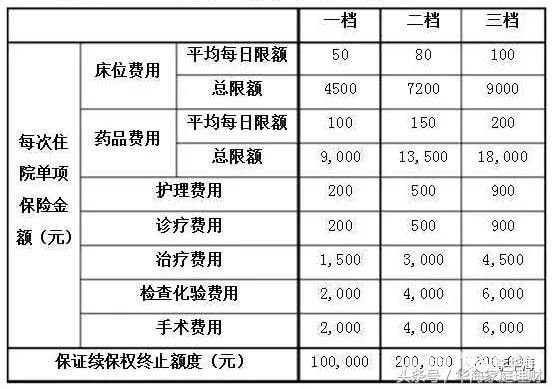 医疗险(以下特指费用报销型医疗险)也可以细分为很多种:有只赔付社保范围内费用的,也有社保内外费用均可赔付的;有设置免赔额的,也有没有免赔额的;有100%报销的,也有只报销80%的;有根据具体医疗费用设置分项限额的,也有只设置一个总限额的;有续保时需要经保险公司同意的,也有可连续投保的,还有少数保证续保的等等。