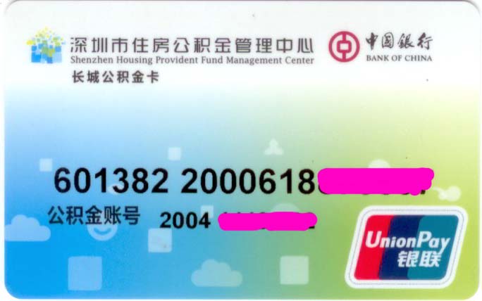 中国银行深圳支行发行的公积金联名卡住房公积金联名卡,既是一张银联借记卡,也是一张公积金储值卡。