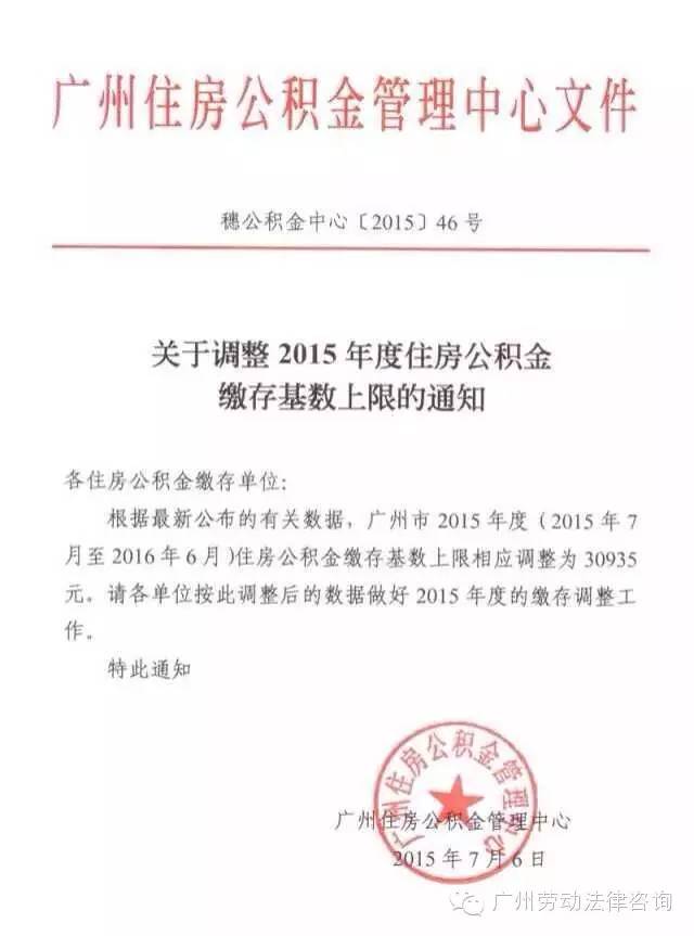 公积金缴存基数方面:从2015年7月1日起,缴存基数不得低于本市现行最低工资标准1895元。由于统计部门暂未公布本市2014年职工月平均工资,缴存基数上限暂定为本市2013年职工月平均工资的5倍,即5808元*5=29040元。待统计部门公布本市2014年职工月平均工资数据以后,广州住房公积金管理中心再发文相应调整缴存基数上限。