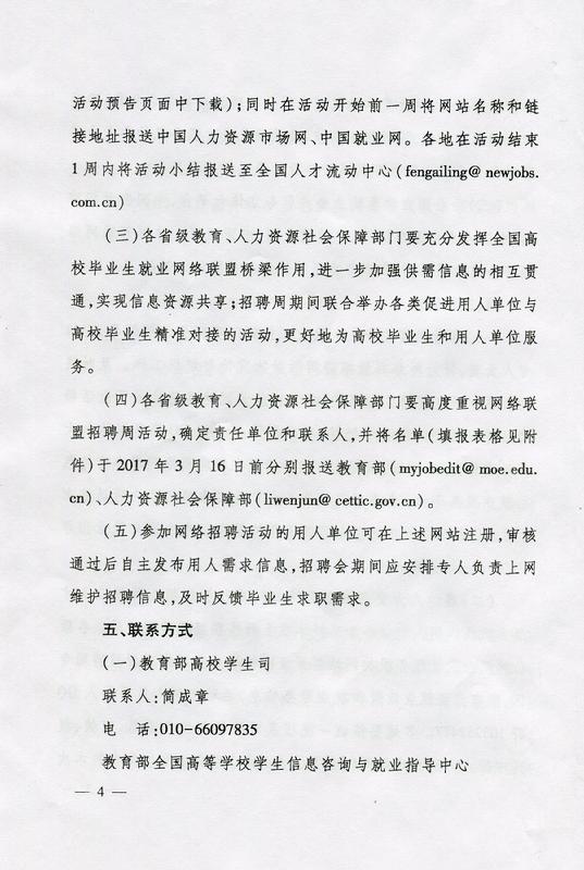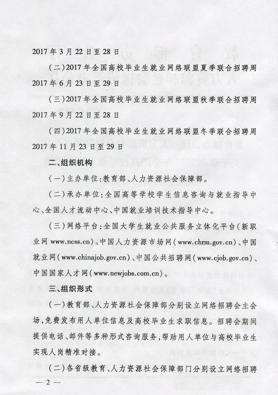 “教育部办公厅、人力资源社会保障部办公厅关于举办2017年全国高校毕业生就业网络联盟招聘周活动的通知(教学厅函〔2017〕”由中国社保网收集整理编辑。
