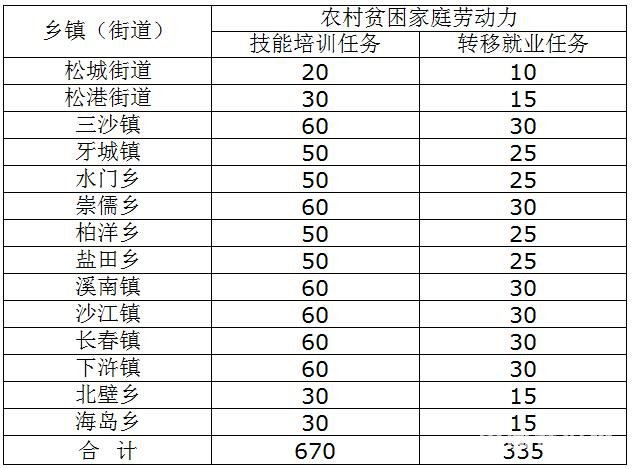2016年乡镇(街道)贫困家庭劳动力技能培训和转移就业任务分解表