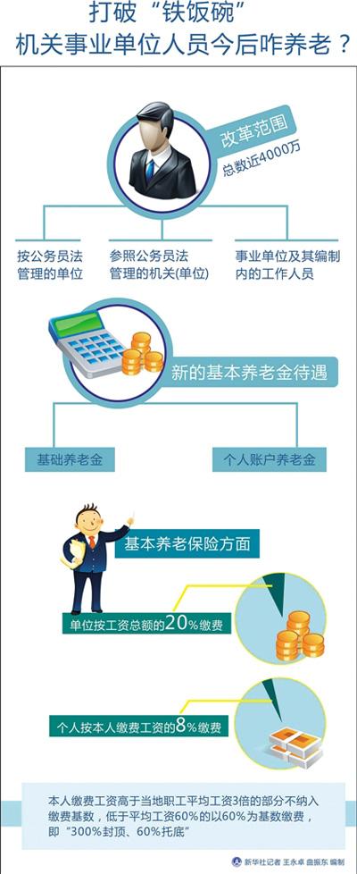 这几天,近4000万机关事业单位工作人员被这两个问题深深地困扰。上周,国务院下发了《关于机关事业单位工作人员养老保险制度改革的决定》(以下简称《决定》),从2014年10月1日起,对机关事业单位工作人员养老保险制度进行改革。这意味着,机关事业单位将建立与企业相同的养老保险制度,进入缴费时代。
