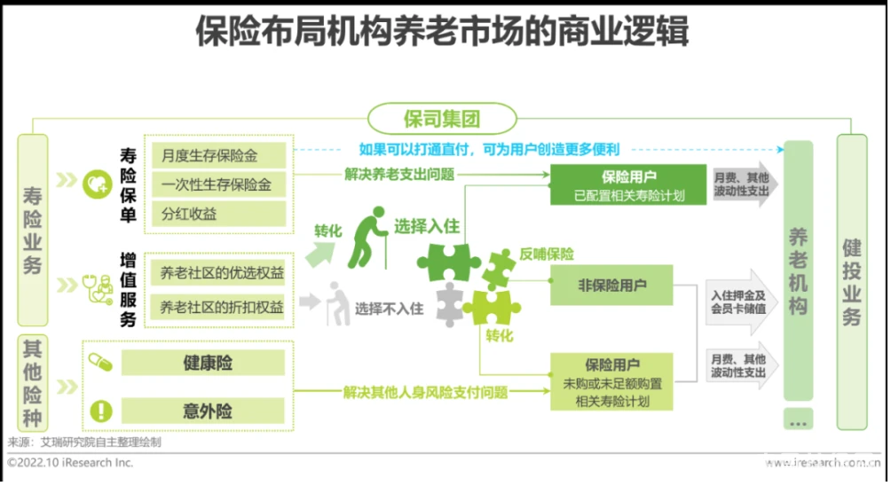 而随着入局商业养老市场的保司增多,市场其他模式的探索逐渐增加,轻资产相对于重资产也有其自身优势。艾瑞咨询认为,轻资产布局机构养老市场的方式既可以降低前期固定投入、缩短回报周期,又能够保障项目经营质量,对拓展中端人群市场有利。