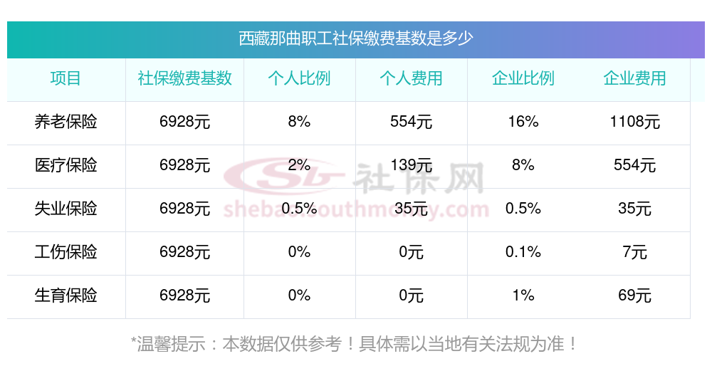 西藏那曲职工社保缴费多少钱?西藏那曲职工社保缴费基数最新参考为:3579.00,具体如下: