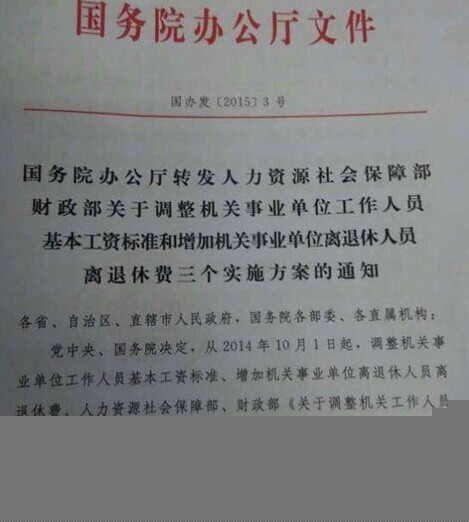 公务员工资调整应按照国办发2015 3号文件执行 国办发2015 3号文件发布