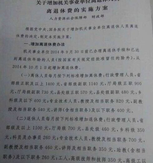 文件显示,调整时间自2014年10月开始,因此今年1月预料将同时补发2014年四季度薪金。