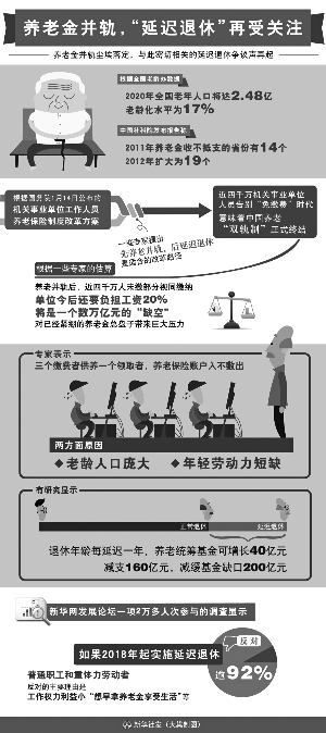 有研究显示,退休年龄每延迟一年,养老统筹基金可增长40亿元,减支160亿元,减缓基金缺口200亿元。