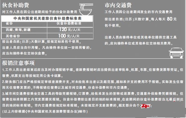 中央和国家机关各级别工作人员出公差,交通、住宿、伙食分别可以花多少钱?