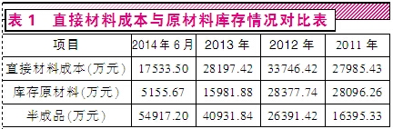 ÎÒÃÇÖªµÀ£¬Ö±½Ó²ÄÁϳɱ¾Îªµ±ÄêÖ÷ÓªÒµÎñ³É±¾ÖÐËùÏûºÄÔ²ÄÁÏÊý¶î£¬ÄÜ·´Ó³³öÆóÒµÔ²ÄÁÏÕæÊµµÄÐèÇóÇé¿ö¡£±ÊÕß¶Ô±ÈÁËÕ䱦µºÖ±½Ó²ÄÁϳɱ¾Óë¿â´æÇé¿ö(±í1)£¬ÆäÖаë³ÉƷΪԲÄÁÏ×Ô¼Ó¹¤ºóµÄÁíÒ»ÖÖÐÎ̬£¬Òò´ËÆä¼ÛÖµ¸ßÓÚÔ²ÄÁϱ¾Éí¼ÛÖµ¡£Í¨¹ý¶Ô±ÈÎÒÃDz»ÄÑ·¢ÏÖ£¬±¨¸æÆÚÄÚÆä¿â´æÔ²ÄÁϺͰë³ÉÆ·µÄ½ð¶îÔ¶Ô¶¸ßÓÚÆäÄê¶ÈÉú²úËùÏûºÄµÄÔ²ÄÁϽð¶î£¬ÓÈÆäÊÇ2013ÄêÖÁ2014Äê6Ô£¬ÕâÒ»ÏÖÏó¸üΪÃ÷ÏÔ¡£µ±È»£¬Èç¹ûÔ²ÄÁϼ۸ñ³ÊÏÖ·ÉËÙÉÏÕǵÄÇ÷ÊÆ£¬¶øÆóÒµÓÖ×ʽð³ä×㣬¶Ú»ýµãÔ²ÄÁÏÒ²»¹ËµµÃ¹ýÈ¥£¬È»¶ø¾ÝÕ䱦µº¹«²¼µÄÔ²ÄÁϲɹº¼Û¸ñÇé¿öÀ´¿´£¬Æä2013ÄêÔ²ÄÁϲɹº¼Û¸ñ½Ï2012Äê³öÏÖÁ˽ϴó·ù¶ÈµÄϽµ£¬Òò´Ë£¬±£³ÖÈç´Ë¸ß¶îµÄ¿â´æÔ²ÄÁϾÍÏԵúܲ»ºÏÂß¼ÁË¡£