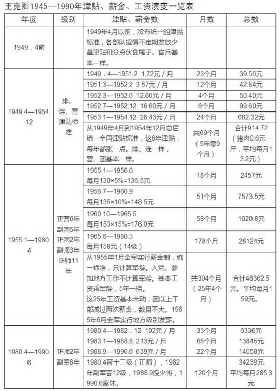 离休干部王克卿在《鱼水情长——我的回忆与联想》一书中回忆了自己革命的一生,更可贵的是,他将65年来自己的工资、养老金收入明细情况晒了出来。