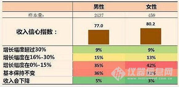 同时,对于未来收入的发展,女性明显表现出更大的信心,收入信心指数高达80.2,仅有3%的人抱有悲观态度。