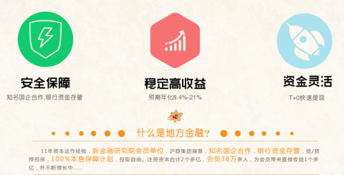 据了解,上海P2P投资理财平台沪臣地方金融是国内最安全的投资理财平台之一,首创资金无限制退出制度,投资人可根据借款项目的融资额度、借款期限、收益率、抵押物说明、还款方式等情况结合自身实际选择性投资,产品有活期和定期,1个月的标年化收益高达19.8%,活期达到7.8%。投资人可以自由选择平台上的项目进行投标,投资人的资金不进公司的账户,由该公司合作银行进行监督,做到不触及红线,先有项目再对接资金,保证资金不错配。由此成为投资理财者的乐园。