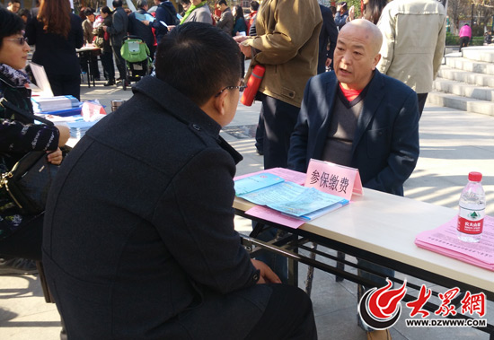 今天上午,在济南历下甸柳社区,人社部门工作人员现场为市民解答咨询