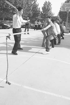 衡水市人力资源和社会保障局举办趣味运动会。图为拔河比赛。