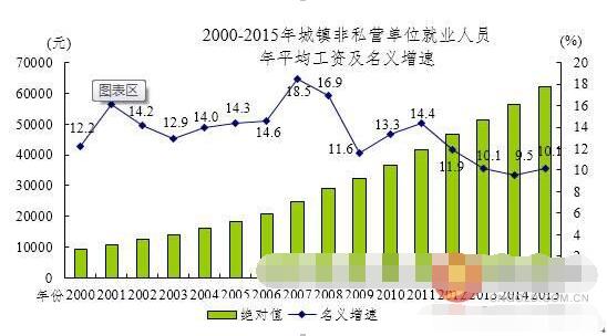 2015年全国城镇非私营单位就业人员年平均工资为62029元,与2014年的56360元相比,增加了5669元,同比名义增长10.1%,增速比2014年加快0.6个百分点。其中,在岗职工年平均工资63241元,同比名义增长10.3%,增速加快0.8个百分点。扣除物价因素,2015年全国城镇非私营单位就业人员年平均工资实际增长8.5%。
