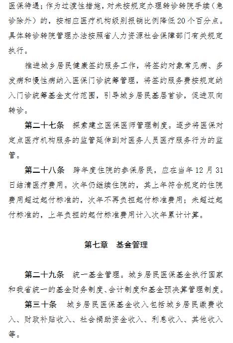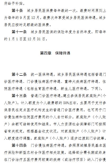 明确保障待遇。城乡居民医保待遇包括普通门诊医疗待遇、门诊慢性病医疗待遇、重特大疾病医疗待遇、住院医疗待遇(包括生育医疗待遇、新生儿医疗待遇)。