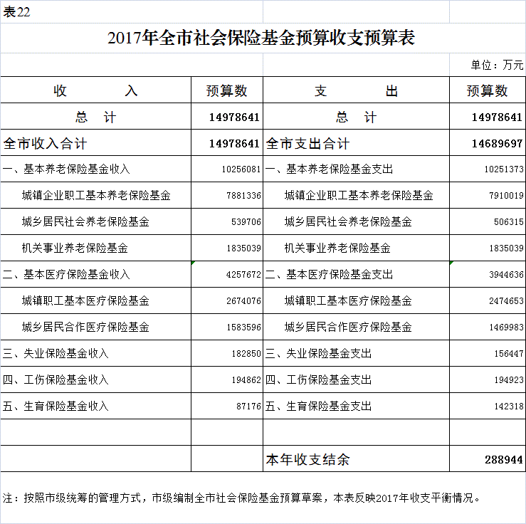“2017年重庆市全市社会保险基金预算收支预算表”由中国社保网收集整理编辑。