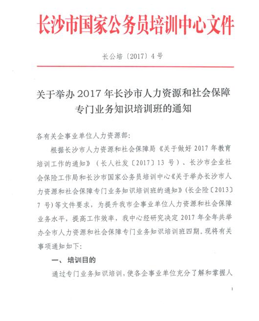 “关于举办2017年长沙市人力资源和社会保障专门业务知识培训班的通知”由中国社保网收集整理编辑。