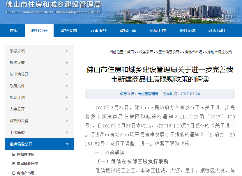 根据《佛山市人民政府办公室关于进一步完善我市新建商品住房限购政策的通知》(佛府办函[2017]190号)的要求,对《佛山市住房和城乡建设管理局关于执行房地产调控政策有关措施的通知》(佛建管函[2016]761号)对应内容进行调整,现将有关事项通知如下: