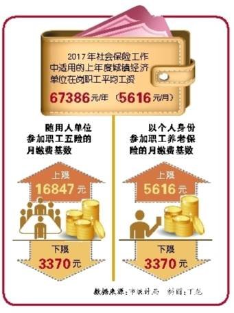 6月16日,记者从市社保局了解到,近日市统计局公布2017年社会保险工作中适用的上年度城镇经济单位在岗职工平均工资(简称“职工平均工资”)为67386元/年(5616元/月),我市2017年社保缴费基数上下限也随之调整。