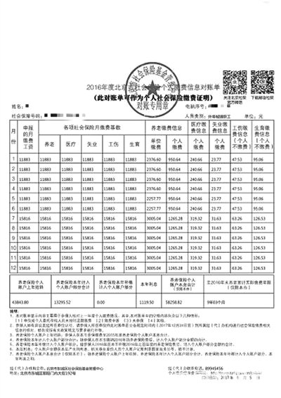 从本月起,参保职工就可通过多种方式查询、核对自己2016年度社保缴费情况。凡是在2016年内参加了社会保险、且有1个月(含)以上正常缴费记录的参保人员,自今年6月1日起,即可通过北京市社会保险网上服务平台、自助服务终端等多种渠道,查询打印2016年度社保对账单,核对个人社保缴费情况。