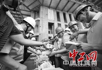 6月28日,北京市人力资源和社会保障局工作人员走进位于朝阳区CBD核心区域的北京第一高楼“中国尊”的施工现场宣传《社会保险法》等法律法规。