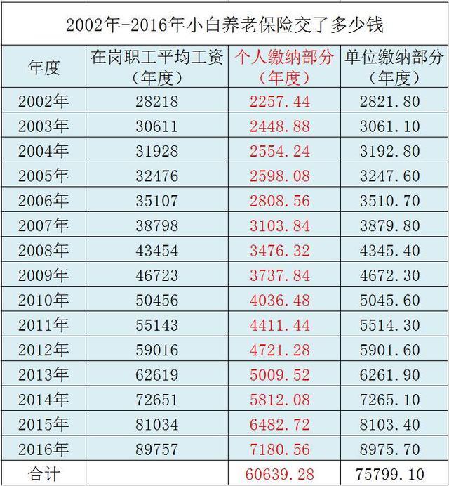 下面就说说,在2002-2016年这些年间,小白养老保险和医疗保险(个人部分)一共攒了多少钱。