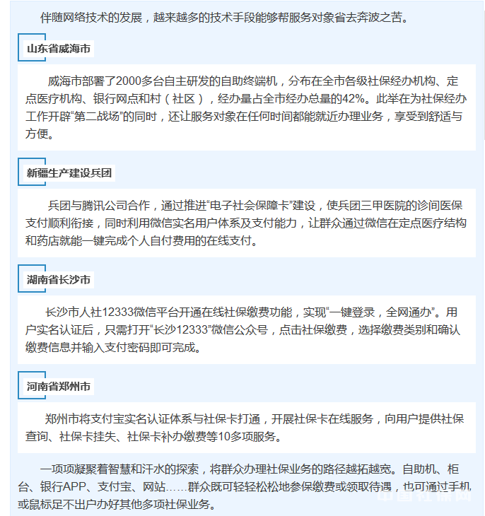 从推行社保业务网上预审、自助办理、委托代办,到开发手机客户端;从加强社保基金智能监控,到待遇领取资格认证更加人性化……伴随互联网融入社保工作程度越来越深,办事群众跑腿越来越少,经办机构管理越来越规范。