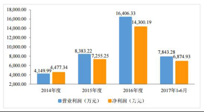 大业股份在2013年、2014年、2015年、2016年及 2017年6月末,营业收入为9.79亿元、11.27亿元、11.35亿元、14.01亿元和8.41亿元,净利润分别为4062.07万元、4477.34万元、7255.25万元、1.43亿元及6874.93万元,扣除非经常性损益后归属于股东的净利润为3372.89万元、3303.65万元、6923.60万元、1.39亿元和6044.03万元。