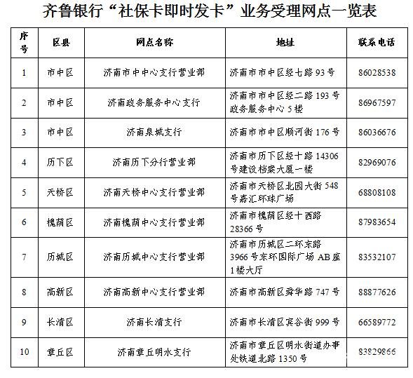 据了解,齐鲁银行在济南市人社局的指导下,大力推广“社保卡即时发卡”业务,目前在济南市已有10家营业网点成功布设“社保卡即时发卡”设备,可以实现社保卡发卡或补换卡业务,现场办理现场现领取的新体验。