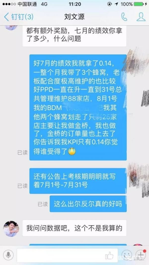 “像南京那边,8月份KPI达到了,结果到了要发工资的时候,刘文源又说8月份KPI要调整,把所有BD的绩效奖金几乎都砍掉了一半。”小唐补充表示。