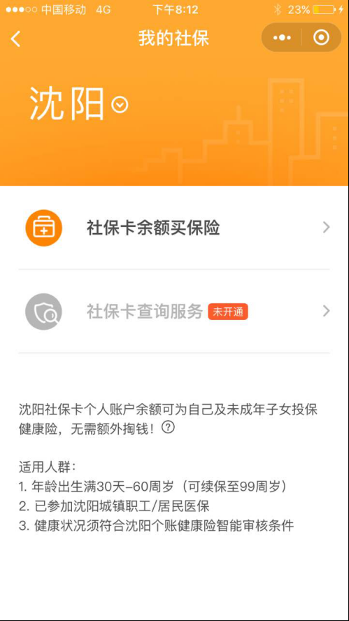 据悉,该产品已于4月12日低调上线,将逐步面向沈阳用户全面开放。若“保险服务”已开通,这部分用户可直接通过微信钱包“保险服务”进入微保首页,点击底部菜单栏“发现”后,查看“我的社保”,进行社保查询或用社保卡余额购买保险。