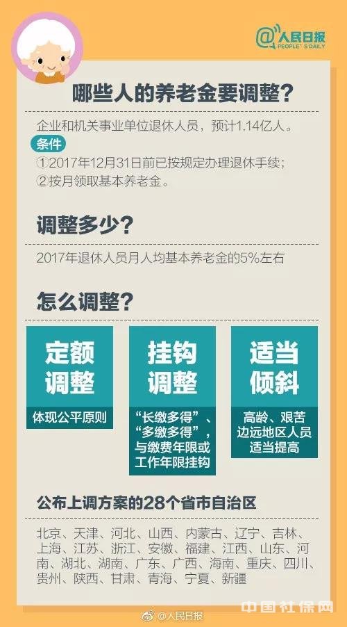 “1.14亿退休人员!28省份养老金上调,各地都怎么调?”由中国社保网收集整理编辑。