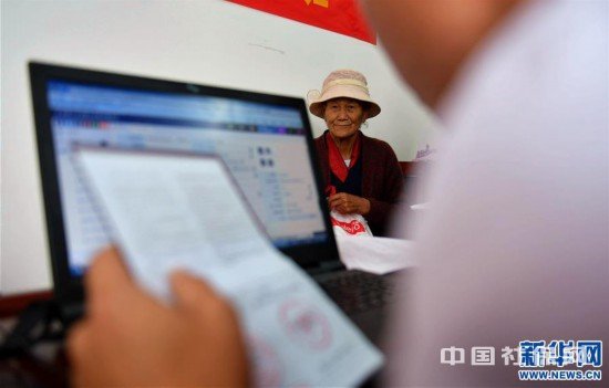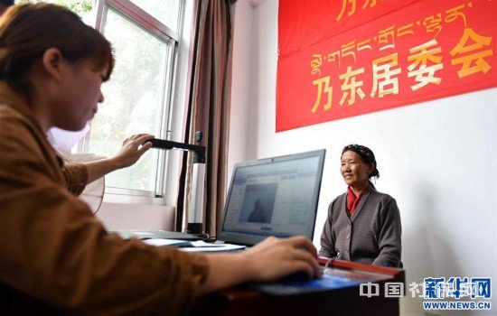 8月27日,工作人员在山南市乃东居委会进行社保卡信息采集工作。新华社记者 晋美多吉 摄