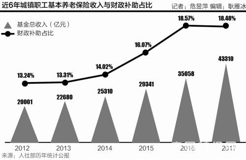 记者统计1998年至2017年基金收入数据发现,各级财政对城镇职工基本养老保险的补贴合计达4万多亿元,占全部累计结存43885亿元的94%。