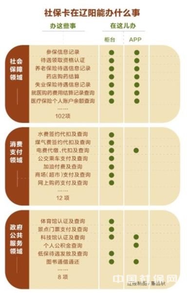 辽阳市在拓展的20项服务功能中,各项生活缴费的代缴代扣和查询、低保待遇发放、加油付费、景点门票支付、图书通借通还等多项便民服务也加载到社保卡上。