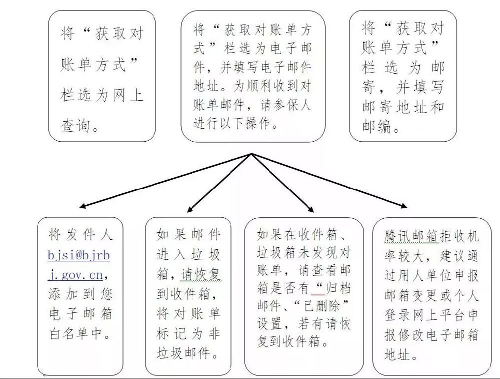 ④腾讯(QQ)邮箱拒收机率较大,建议您通过北京市社会保险网上服务平台修改获取对账单电子邮箱地址。