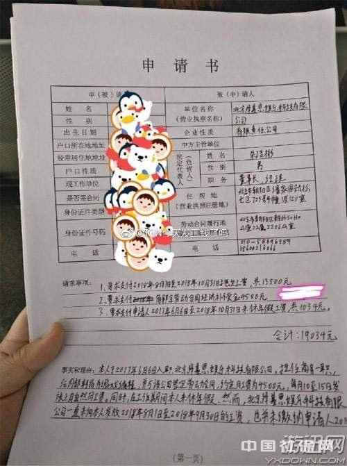 网友“IGN今天发工钱了吗”提供的劳动仲裁申请书