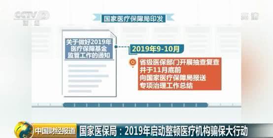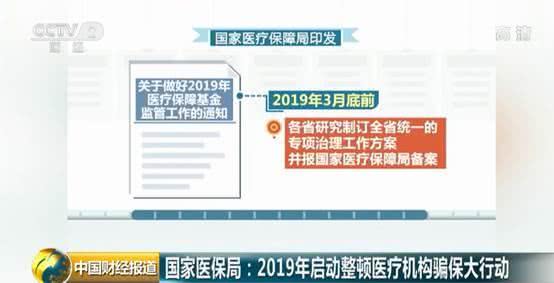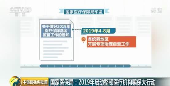 (央视财经《中国财经报道》栏目)日前,国家医疗保障局印发《关于做好2019年医疗保障基金监管工作的通知》,坚决打击欺诈骗保行为,切实保障基金安全,在全面检查的基础上,2019年开展打击欺诈骗保专项治理。