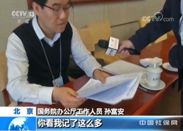国务院办公厅工作人员孙富安:你看我记了这么多,涉及到了医疗、养老、卫生方方面面。中午我整理一下之后,马上就要回单位,交到我们同事那。