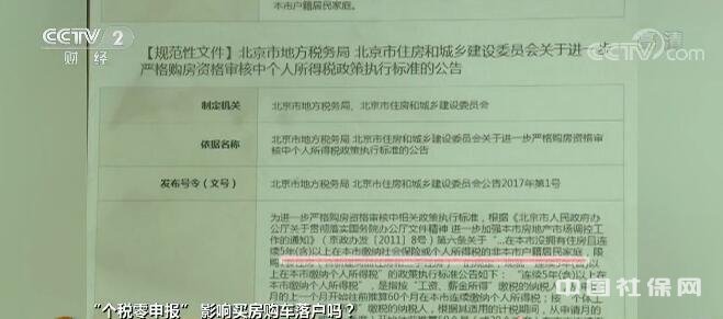 北京市住房和城乡建设委员会工作人员:这个个税必须得是大于零的,比如有一分钱都可以,当初设定这个购房资格的时候,就是为了抑制炒房的这个事,有这个社保和个税,基本上能证明你在北京起码有固定的职业,是在北京生活。