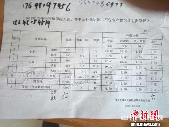 当地另一位投保人李玉良告诉记者:“我们在2018年4月30日向中华联合财产保险公司四子王旗支公司缴纳保险费,当时保单上的赔付条款规定旱地小麦和油菜籽均为200元/亩。”
