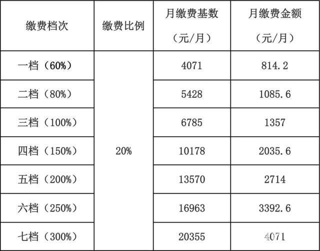 农村居民可从10%档至50%档中选择任意一档缴费。城镇居民可从40%档和50%档中选择任意一档缴费。