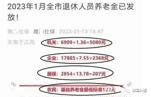 江西鹰市社保局在 2023 年 1 月 13 日发布一则 " 自我表扬稿 " ——《2023 年 1 月全市退休人员养老金已发放》。本意是表扬 " 当地在春节前加班加点,把三类人的养老金都提前发放到位了,让所有退休老人安心过大年 "。