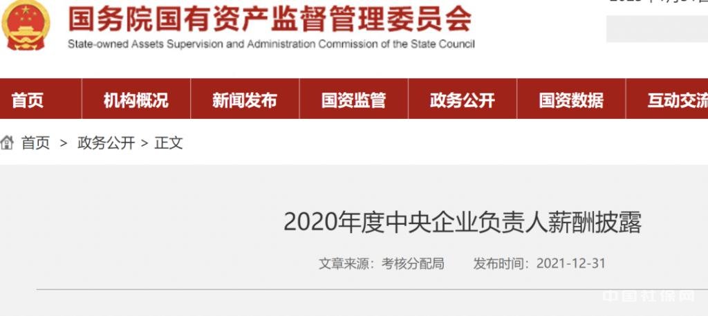 2021 年 12 月 31 日,国务院国资委网站发布 2020 年度中央企业负责人薪酬披露。96 家央企分别在企业官网公布了负责人年薪收入情况。