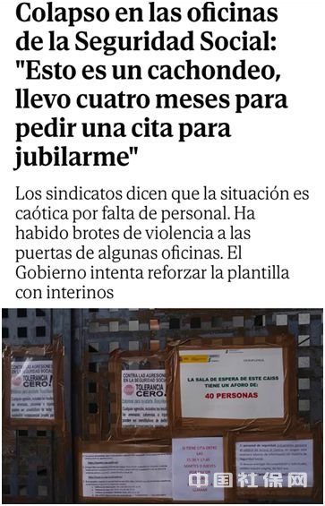 《世界报》报道,马德里国家社会保障办公室人手严重不足,市民无法预约到办公室,社会保障部承认存在问题,但否认存在崩溃,引发民愤。