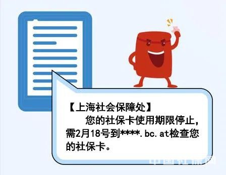 近期,市反诈中心接到市民举报,自己收到 “上海社会保障处”发来的社保卡到期的短信。若点开短信中的网址链接,输入个人及银行卡信息,钱财将被盗刷。