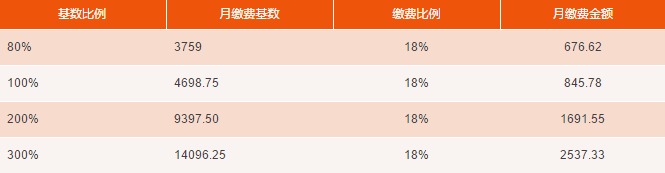 参加杭州市区职工基本养老保险的灵活就业人员、个体工商户(不含以单位形式参保的个体工商户),月缴费基数由参保人员在上年度全省在岗职工月平均工资(4698.75元)的80%—300%之间自行确定,缴费比例为18%。