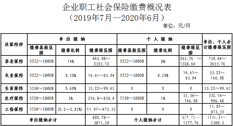 缴费基数和缴费标准执行时间为2019年7月1日至2020年6月30日。