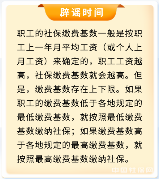 图片来自:中国社会保障杂志微信首先,根据《关于规范社会保险缴费基数有关问题的通知》(劳社险中心函【2006】60号)文件的规定,职工的社保缴费基数一般是按职工上一年度月平均工资(或个人上月工资)来确定,职工工资越高,社保缴费基数就会越高。